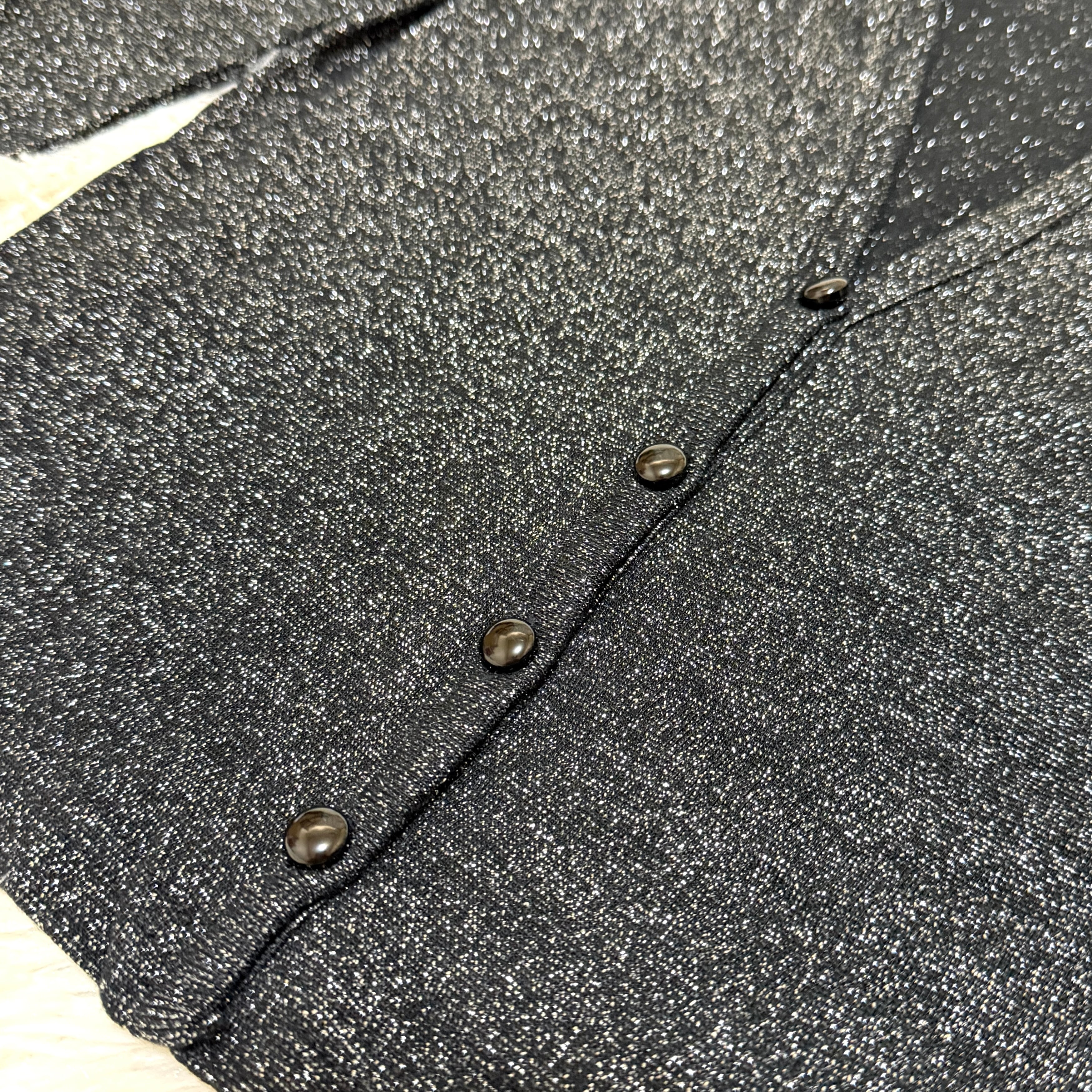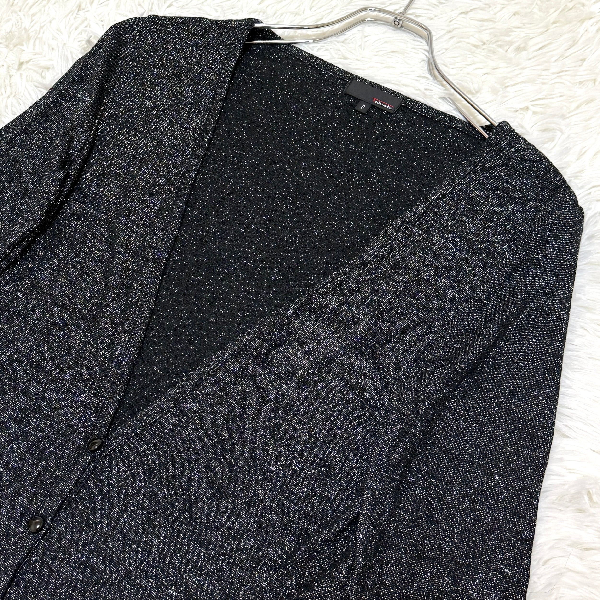 ブラック(黒)のラメが織り込まれたVネックの上品なカーディガンです。