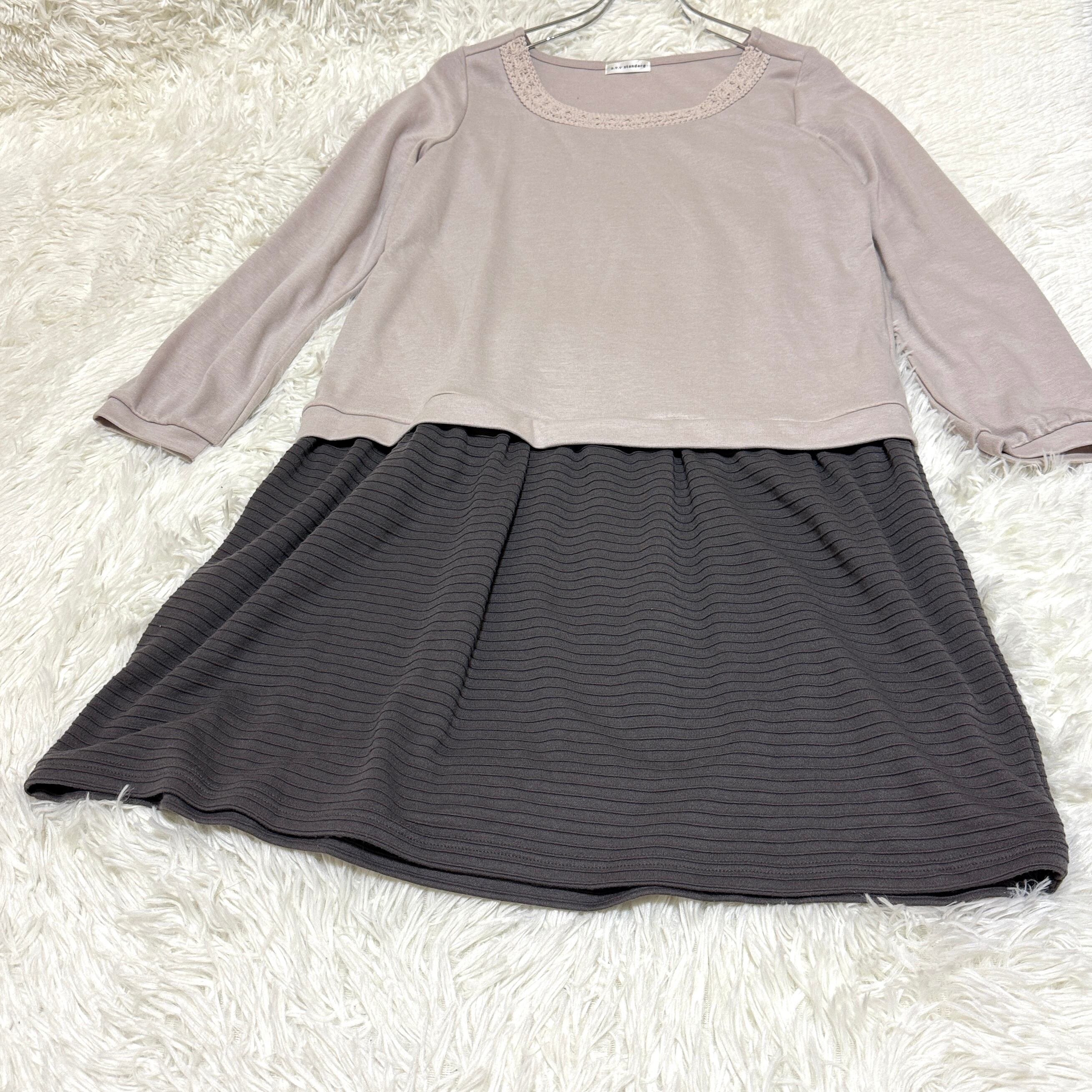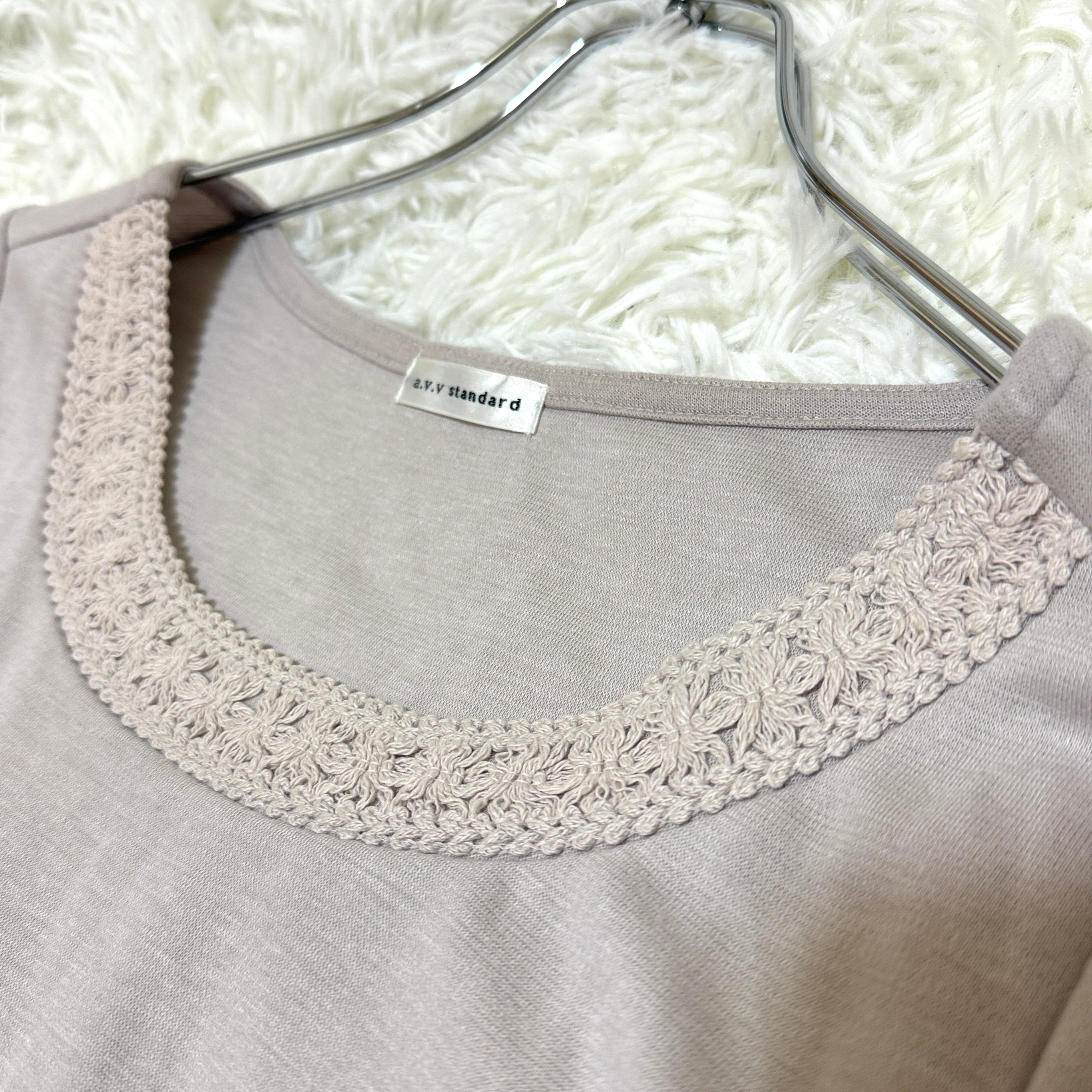 【L】 a.v.v standard ワンピース 長袖 襟元 レース ひざ丈