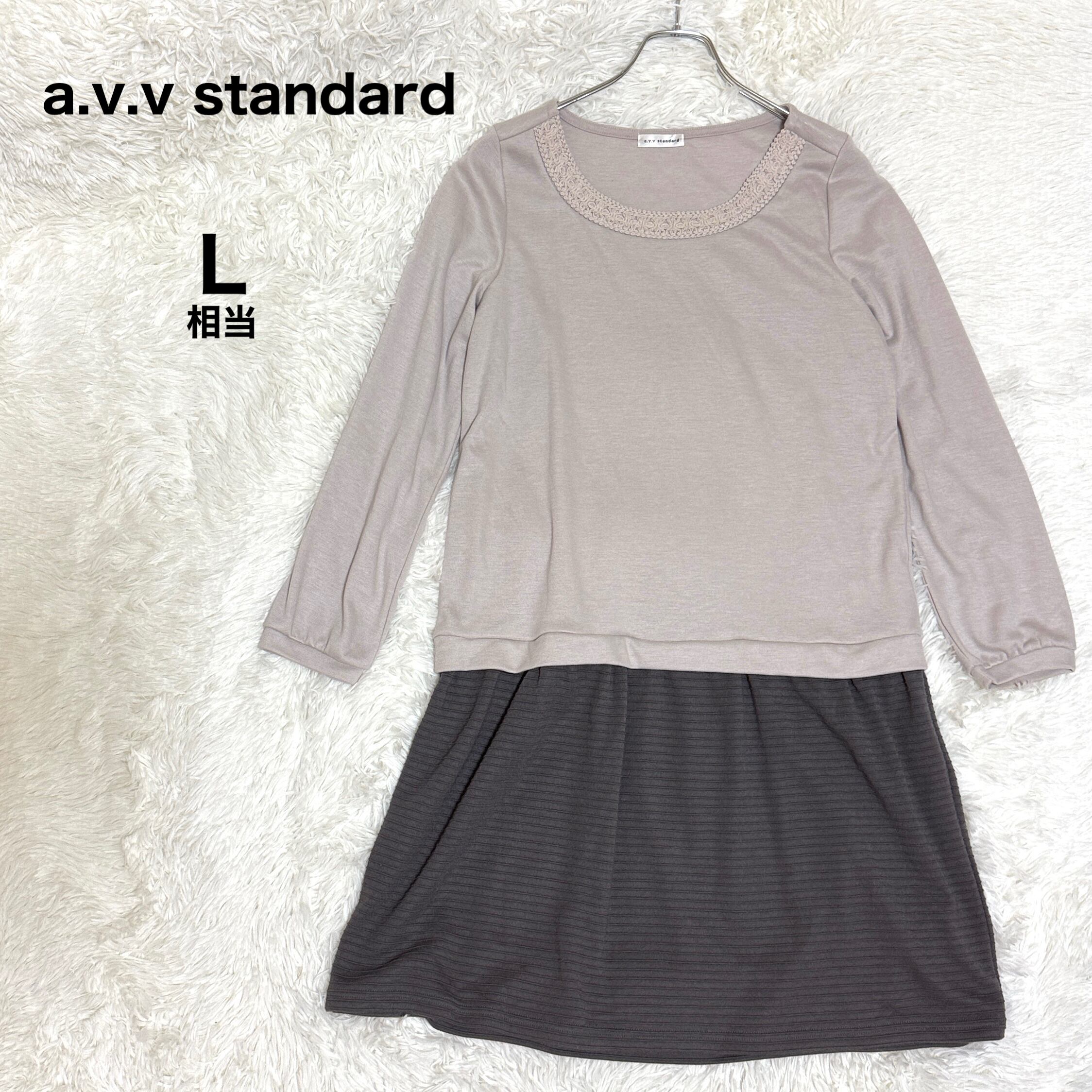 【L】 a.v.v standard ワンピース 長袖 襟元 レース ひざ丈 アーヴェヴェ