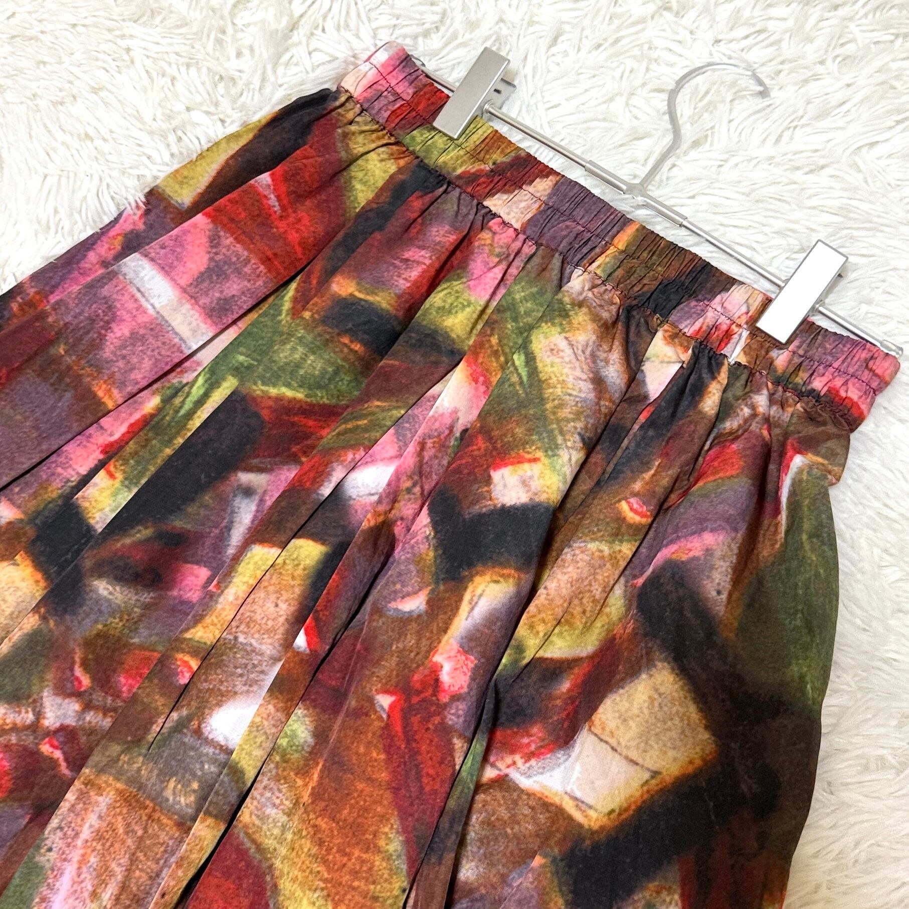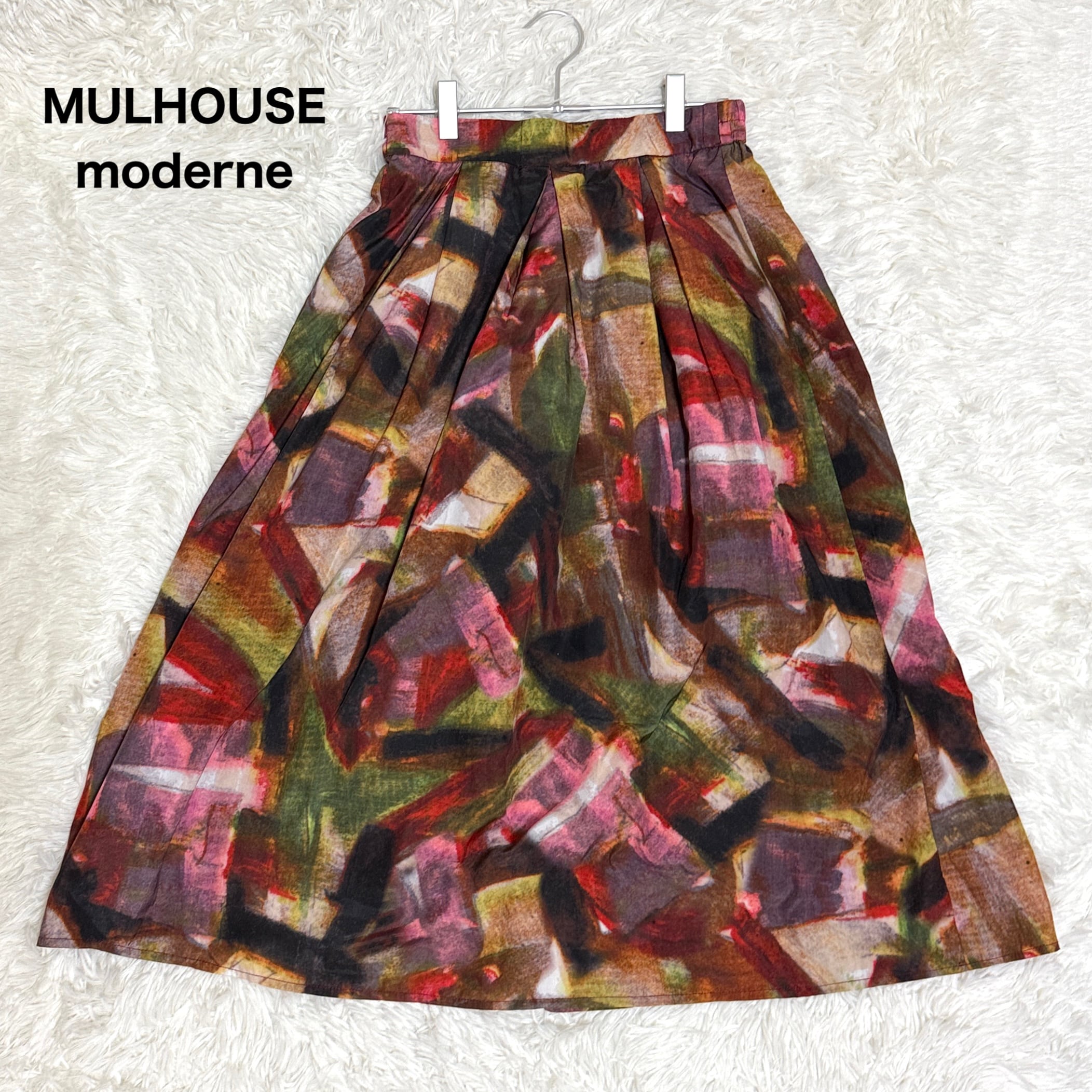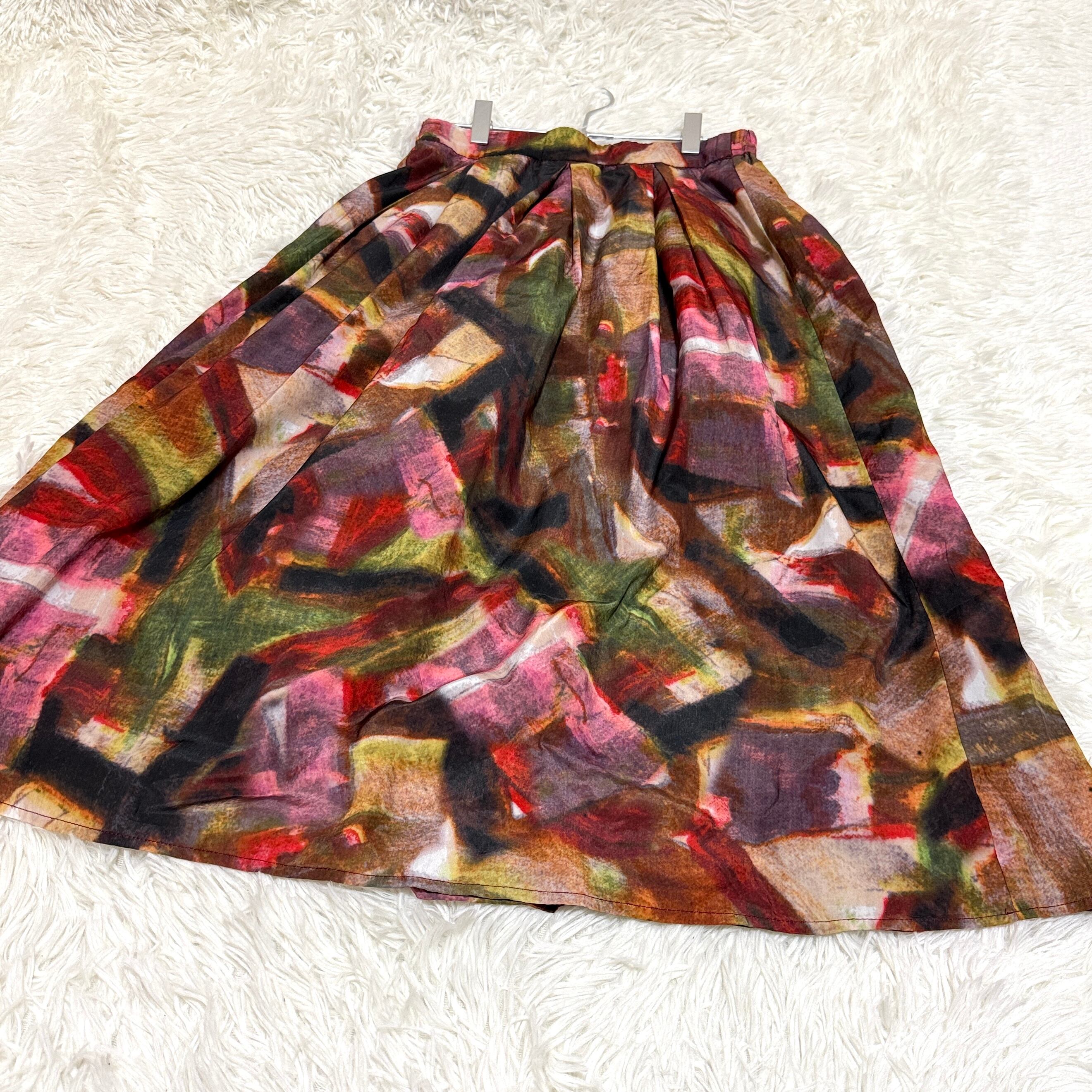 MULHOUSE moderne スカート ウエストゴム ひざ丈 総柄 カラフル