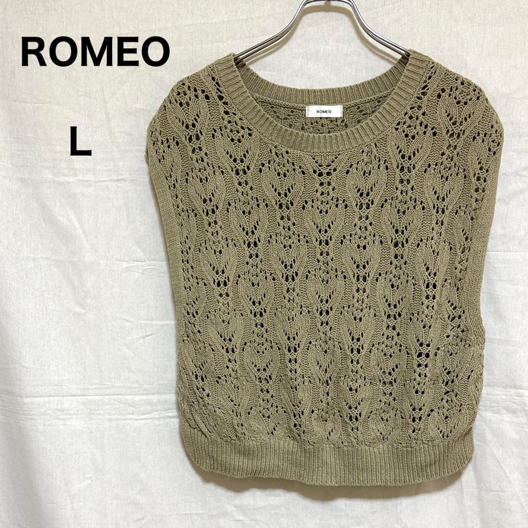 【L】ROMEO ロメオ レース 透かし編み ニット ベスト 重ね着