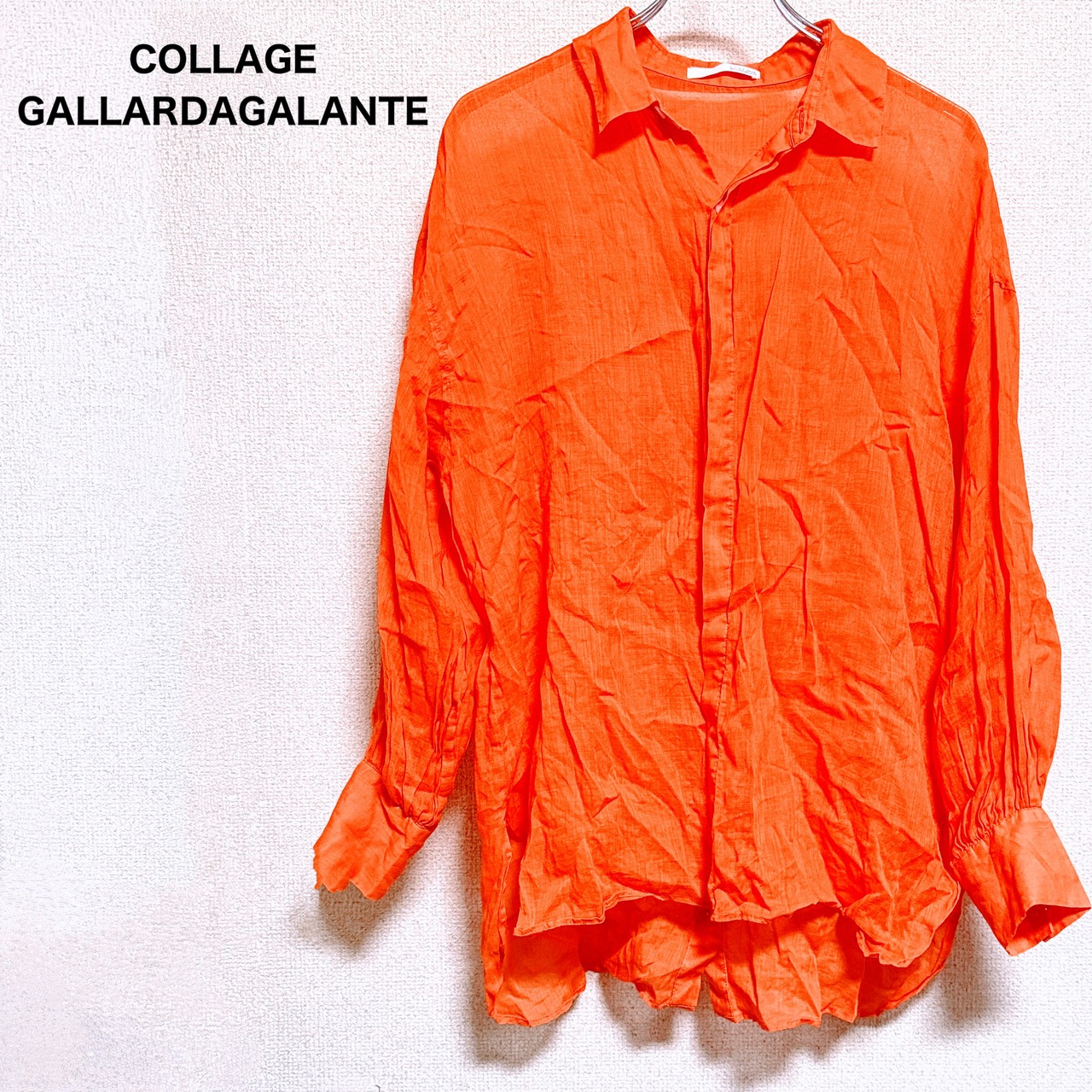COLLAGE GALLARDAGALANTE コラージュ ガリャルダガランテ シャツ ブラウス 薄手 オレンジ 麻100% 長袖 透け感 羽織り