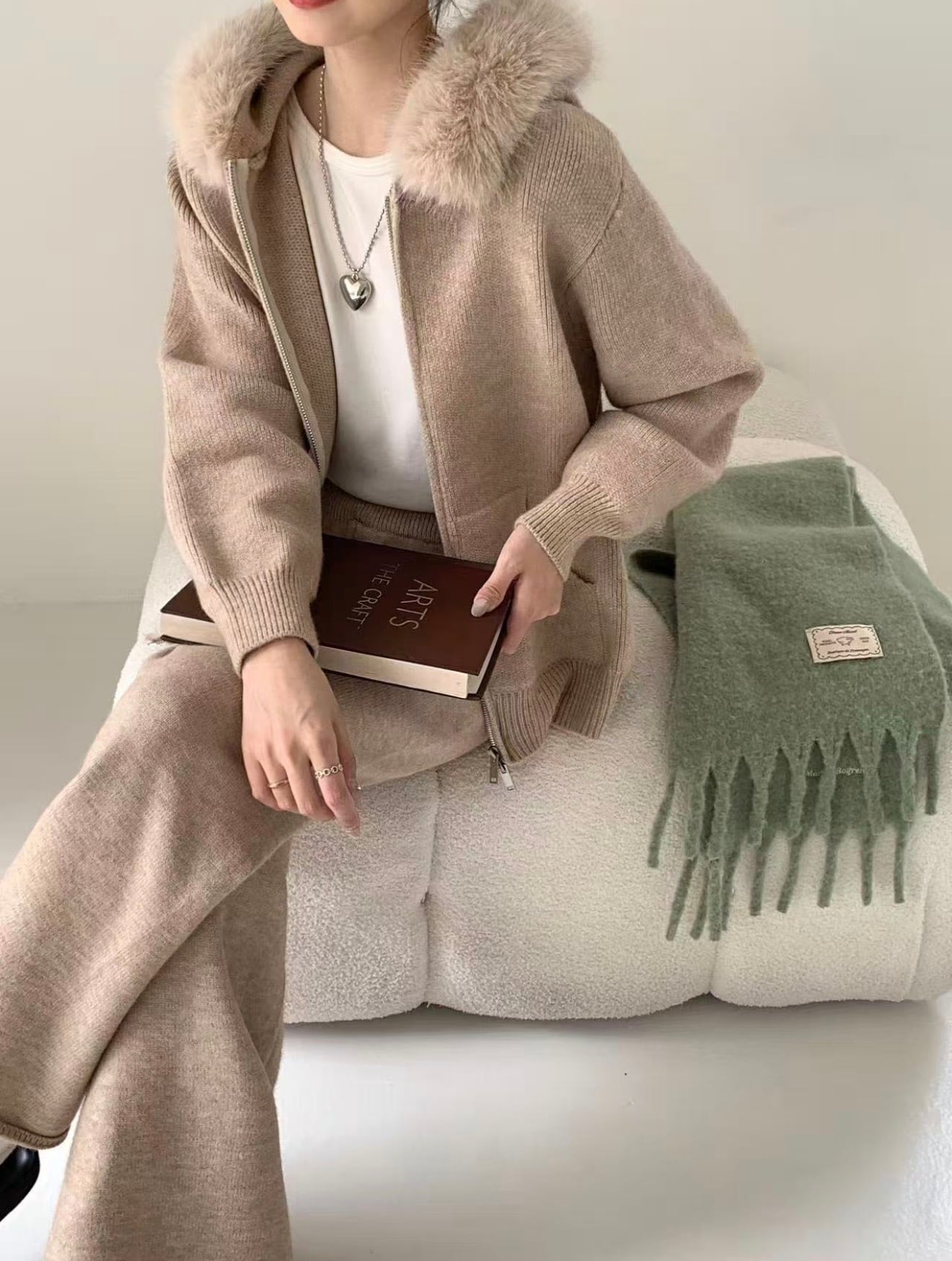 カーディガン × ニットパンツ 2点セット|INSデザイン・韓国ファッション(レディース)