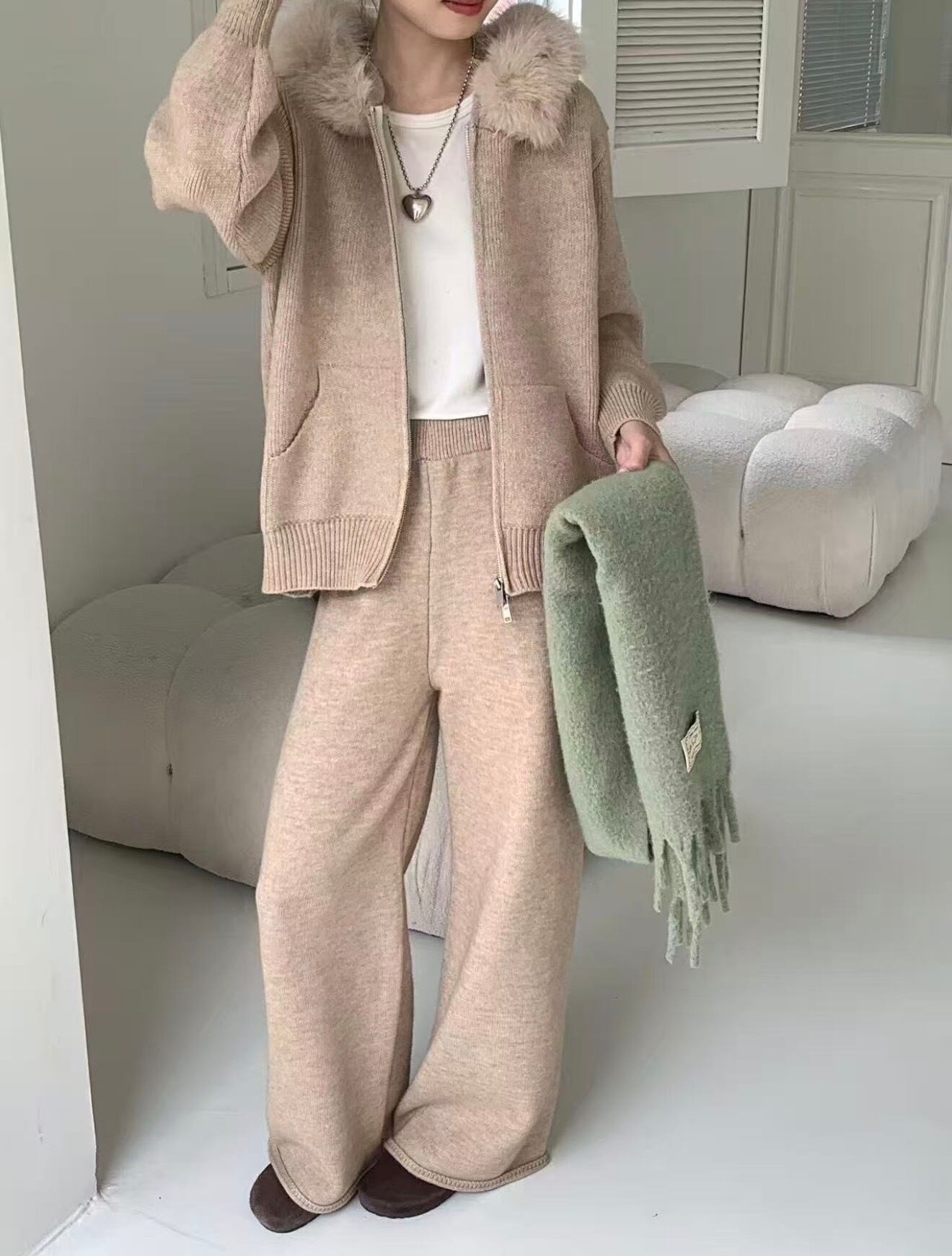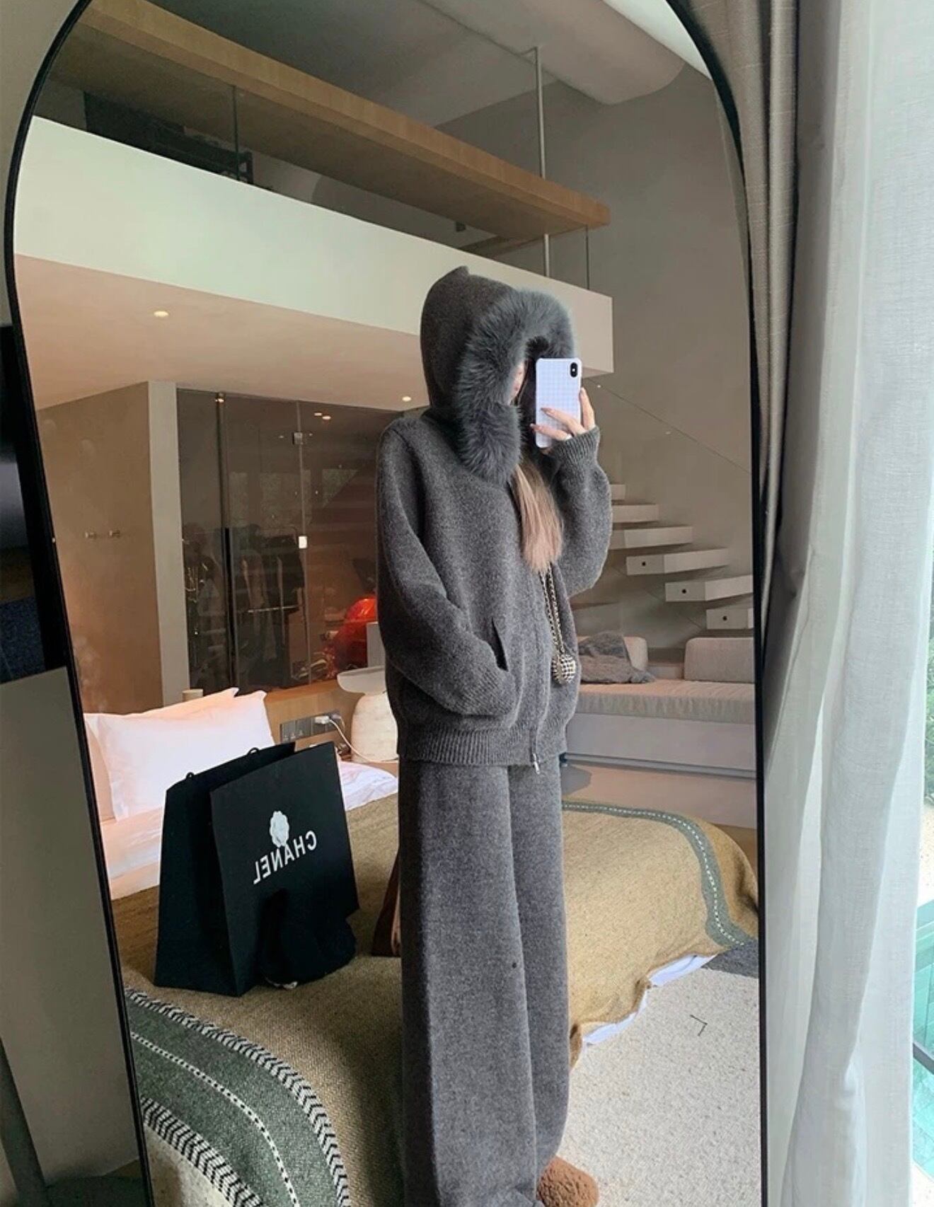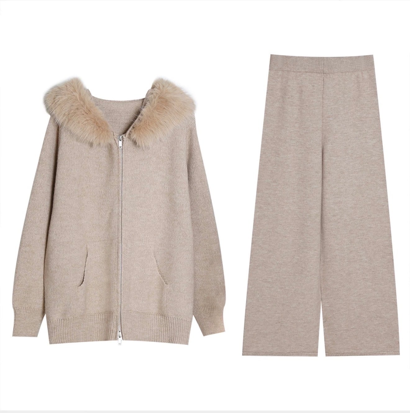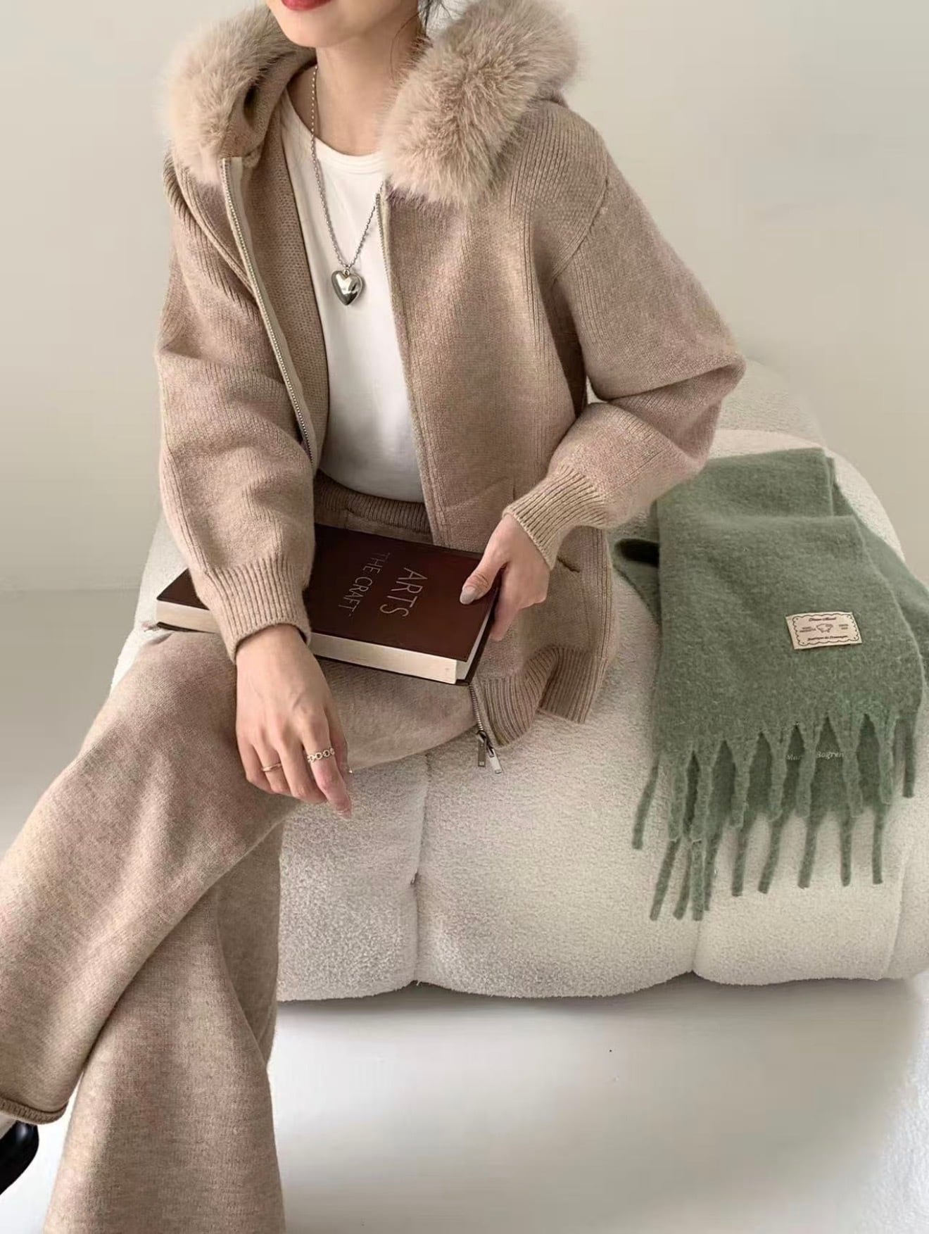 2025年INS秋冬新作、オシャレファーフード付きニットパンツセットアップです。トレンド感あるデザインが、あなたのスタイルを格上げします!柔らかなニット素材にファーフードがアクセントとなり、カジュアルなお出かけから特別なシーンまで、幅広く活躍します。