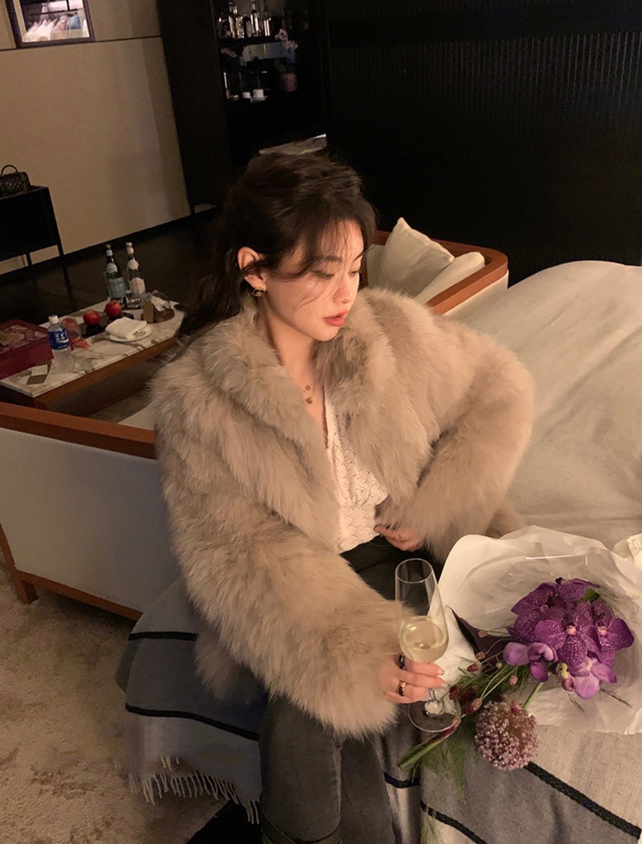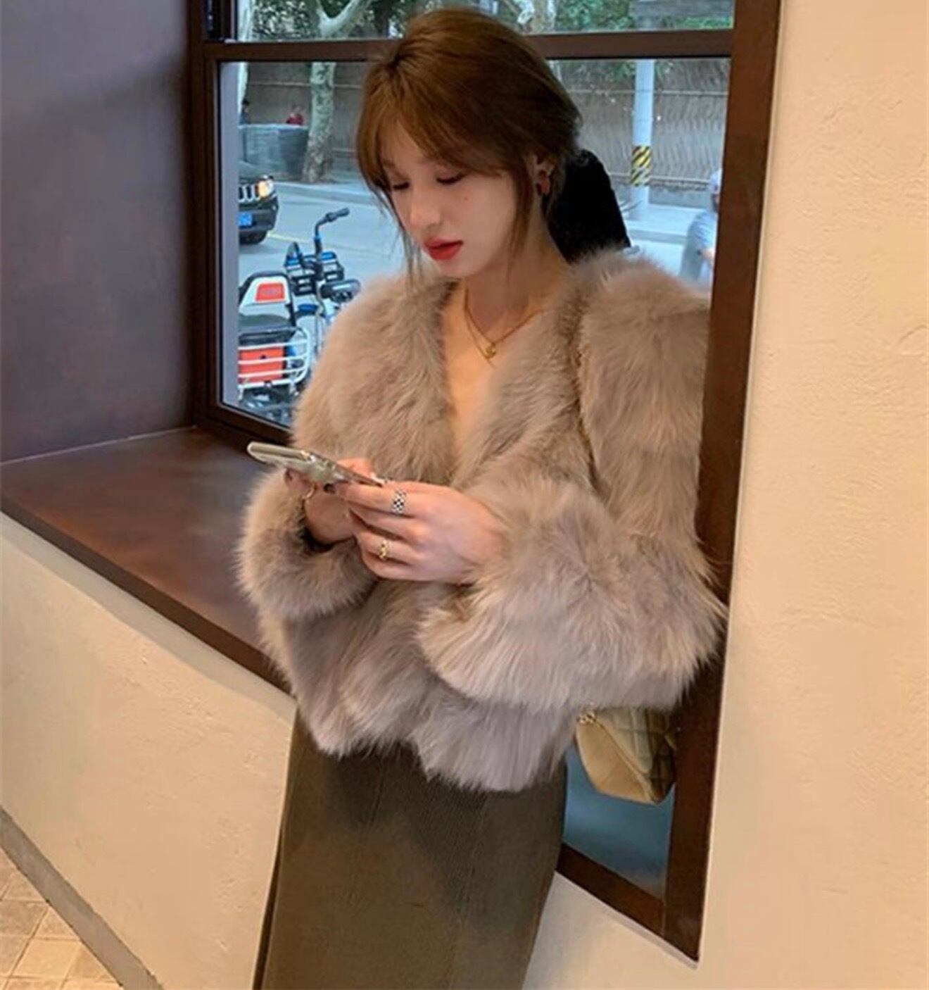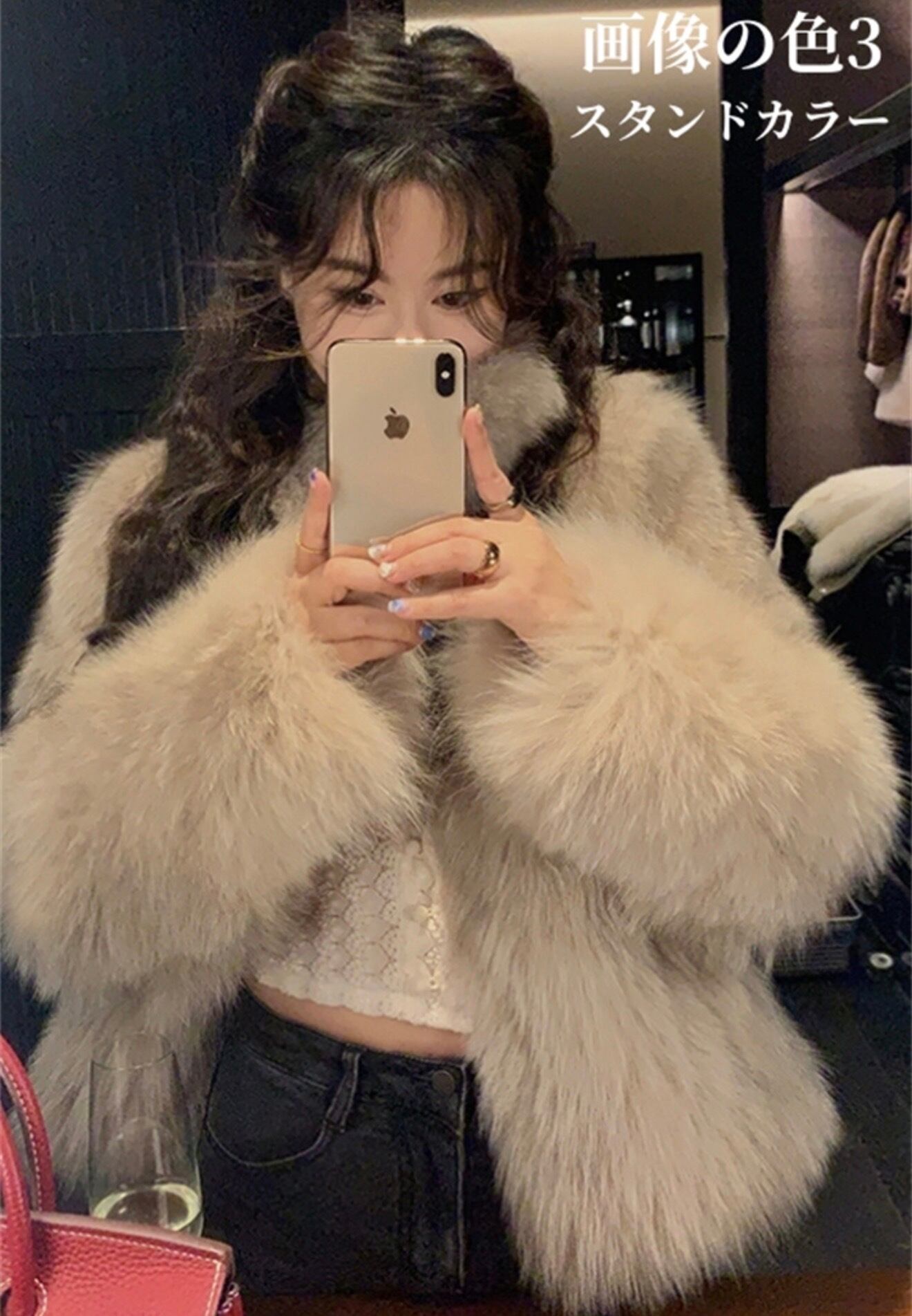 レディース キツネ毛 毛皮コート 短いスタイル 洗練された スリム 毛毛コート