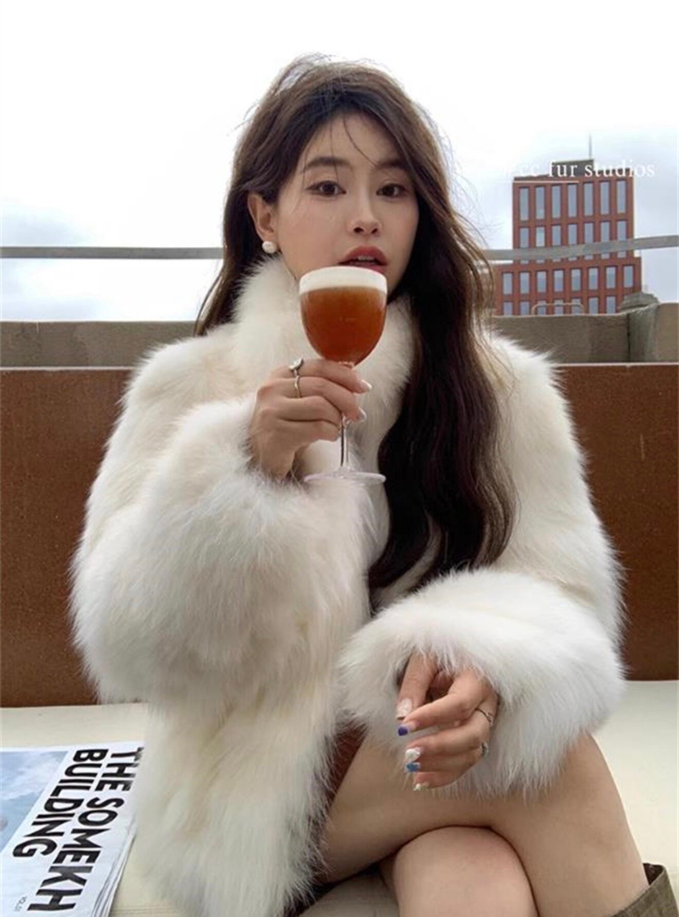 圧倒的な真実好評 レディース キツネ毛 毛皮コート 短いスタイル 洗練された スリム 毛毛コート